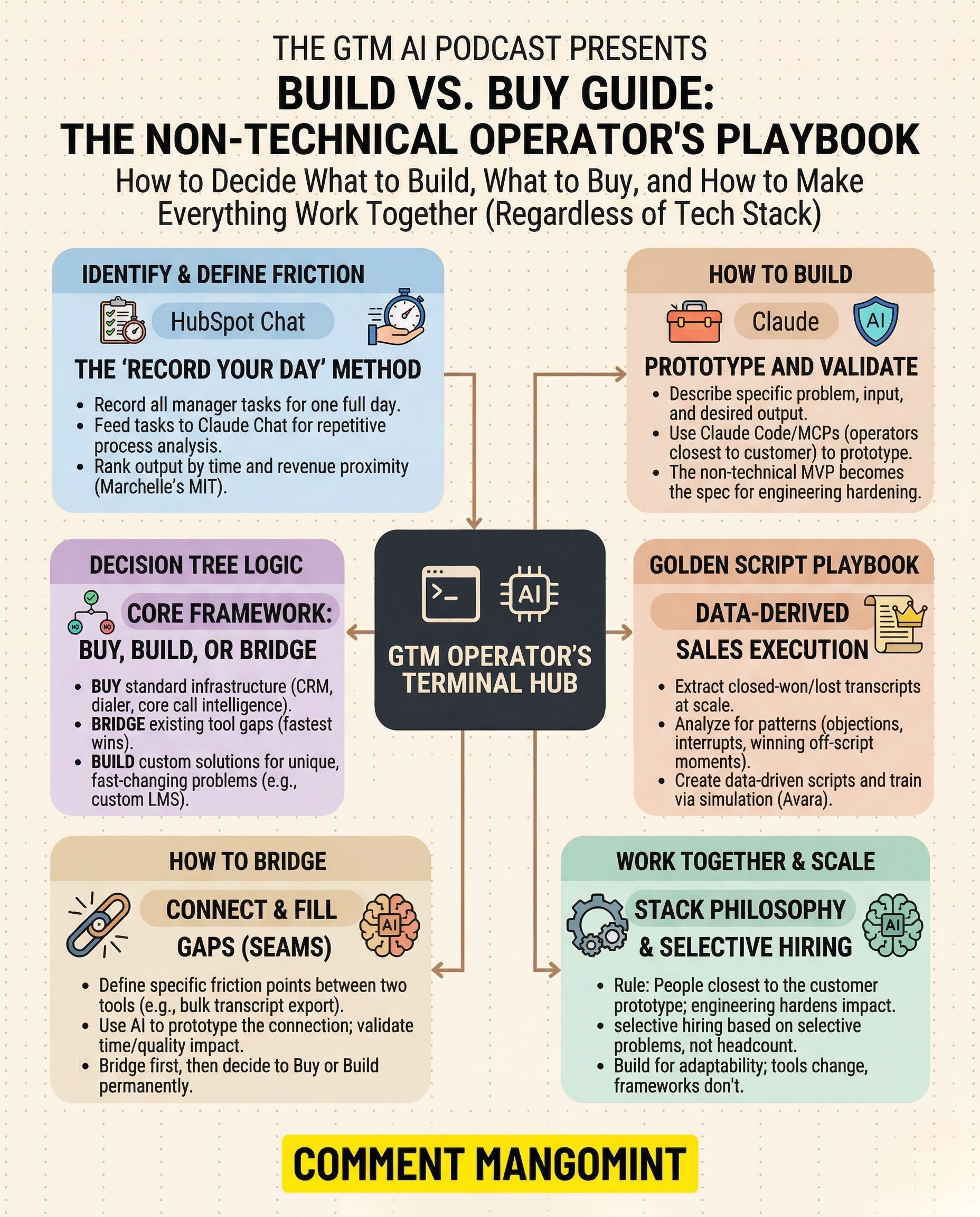 This guide isn’t about Marchelle’s specific tools. It’s the decision framework and execution playbook behind what she did, so you can do the same thing with whatever stack you run. Gong or Momentum. Outreach or Nooks. Confluence or Notion. Salesforce or HubSpot. The framework is stack-agnostic. The principle is universal: the people closest to the customer should be the ones building solutions, and AI just made that possible without writing a single line of code.
