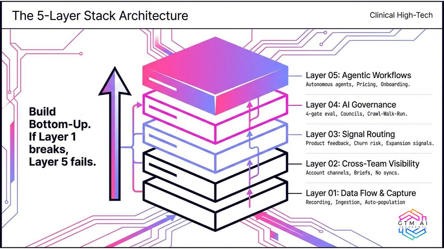 Most GTM teams approach AI like a shopping spree. Buy a call recorder. Buy an enterprise search tool. Buy a forecasting platform. Each one generates valuable signal. None of them talk to each other. The result: isolated islands of intelligence that nobody trusts enough to act on.