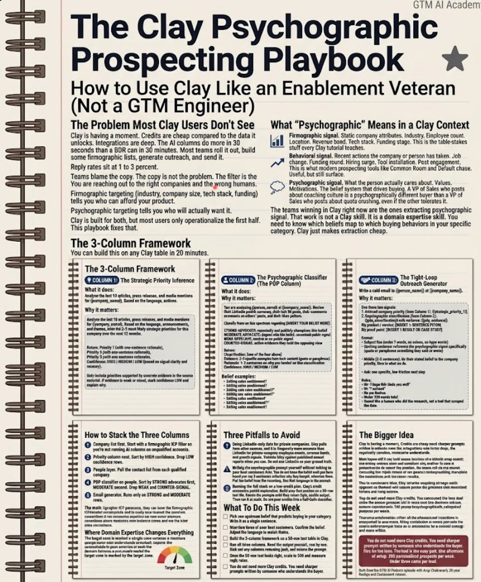Audit your current Clay columns. Are any of them psychographic, or are they all firmographic? If all firmographic, you’re leaving the best signal untouched.