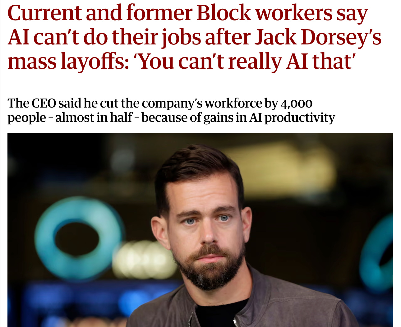 Jack Dorsey just cut Block’s workforce nearly in half and said AI made it possible.